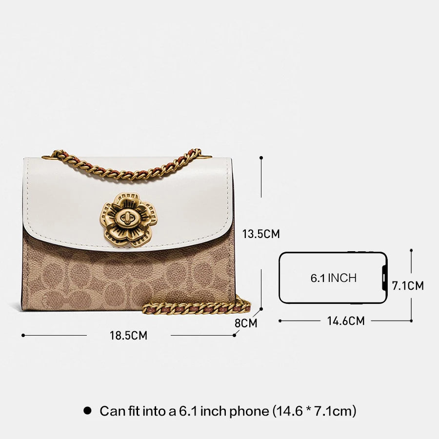 - Accents de Luxe : Les ferrures en métal poli, y compris les boucles et les fermoirs, ajoutent une touche de sophistication et de durabilité, rehaussant le design luxueux du sac.