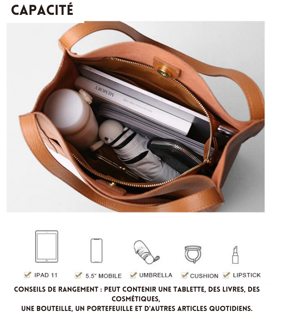 - Sécurité Supplémentaire : Le sac comprend également un rabat avec un bouton-pression magnétique pour une sécurité et un style accrus.