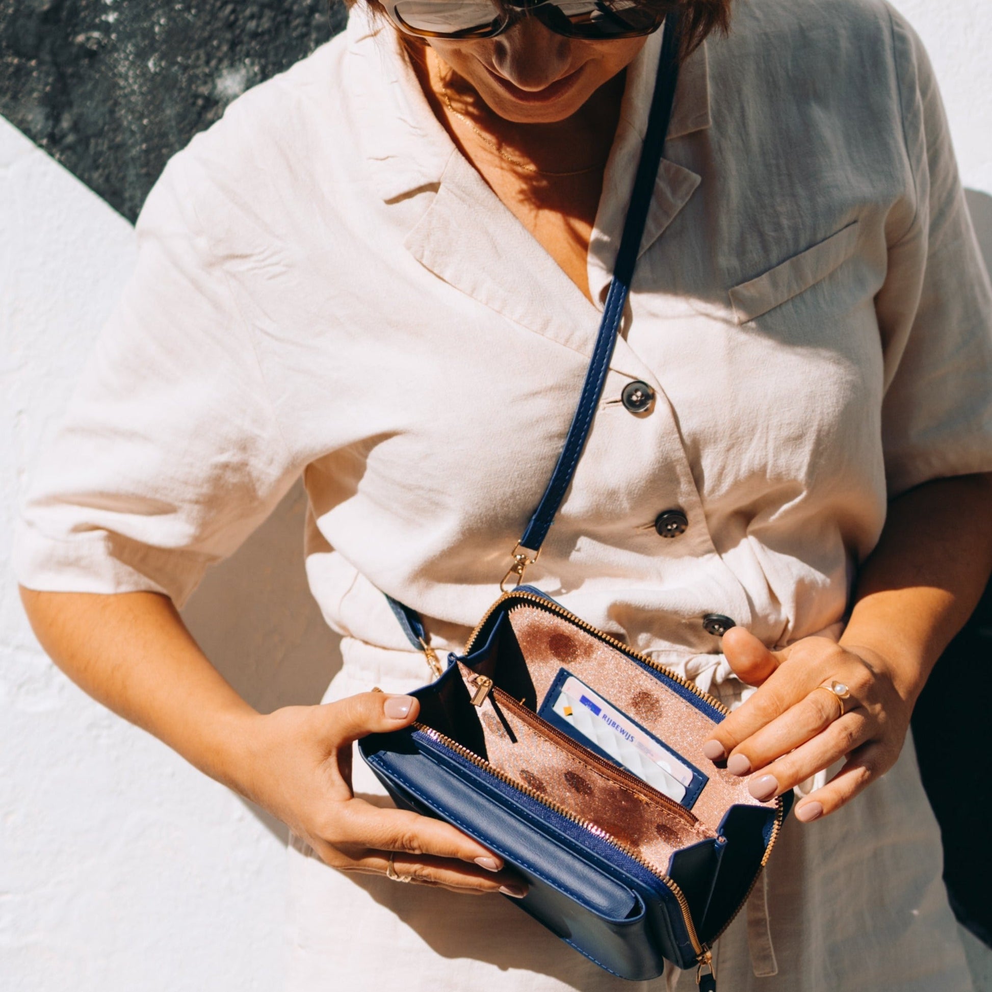Transformez votre pochette portefeuille en un sac croisé mains libres avec la sangle détachable, ou portez-la comme un portefeuille bracelet élégant.